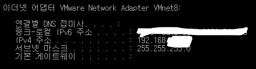 명령어를 사용하여 ip주소와 인터페이스 명 확인.